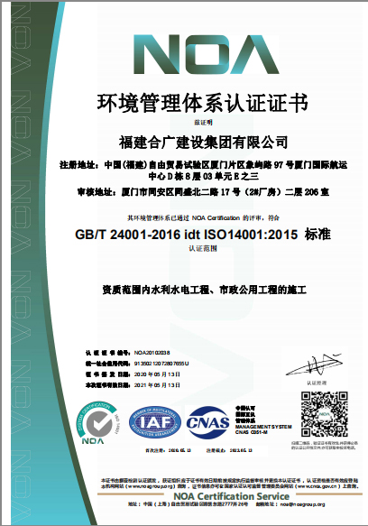 福建合廣建設(shè)集團(tuán)有限公司,注冊資本5188萬元人民幣,公司位于廈門市同安區(qū)鳳山一里151-17號。本公司成立于2013年,公司具備市政公用工程、水利水電工程、房屋建筑工程、公路工程、園林綠化等多專業(yè)施工資質(zhì)。企業(yè)從業(yè)人員100多人,各類專業(yè)技術(shù)人員70多人,其中高級職稱8人,中級職稱40多人,一級建造師6人,二級建造師15多人。